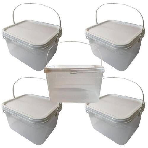 Balde retangular transparente 2.4 litros com tampa lacre de segurança 100% bpa free - kit 05 peças nastripack