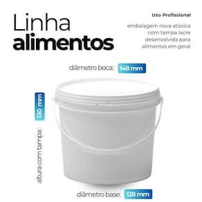 Balde branco 1.8 litros com tampa lacre de segurança 100% bpa free - kit com 15 peças Importante: Os baldes sao comercializados vazios e sem impressão. O titulo do anuncio e o rotulo na foto são apenas sugestoes de uso Conteúdo do kit: 15 x baldes brancos com alça plástica de 1.8 litros 15 x tampas plásticas brancas com lacre de segurança Imagine abrir sua geladeira e encontrar todos os seus alimentos perfeitamente organizados e protegidos. Com nossos baldes brancos, economia tempo evitando bagunça. A tampa com lacre de segurança garante que seus alimentos permaneçam frescos por mais tempo, evitando desperdícios e economizando dinheiro. Os baldes industriais da nastripack são fabricados com matéria-prima 100% virgem e atóxica, em conformidade com os requisitos da anvisa. Produzidos em equipamentos de última geração, esses baldes apresentam alta produtividade e baixo impacto ambiental. Ideal para: Uso comercial: restaurantes, padarias, lanchonetes, food trucks, cozinhas industriais. Uso doméstico: organizar e armazenar alimentos na geladeira, freezer ou despensa. Vantagens: Perfeito para congelamento: congele porções individuais de alimentos ou guarde sobras de forma segura e prática. Resistência térmica: suportam baixas e altas temperaturas, sendo aprovados para contato direto com alimentos. Versatilidade: ideal para armazenamento de tintas, químicos, produtos agrícolas, lubrificantes e alimentos. Tampa lacre: fechamento seguro e fácil de colocar, com design que permite empilhamento seguro. Reutilizáveis e sustentáveis: diminua o uso de embalagens descartáveis e contribua para um planeta mais limpo. Estes baldes são resistentes e podem ser reutilizados diversas vezes Fácil transporte: leves e com alça resistente, são práticos para transportar seus alimentos com segurança. Benefícios: Segurança alimentar: fabricados em polipropileno virgem, 100% livre de bpa e atóxico, garantindo que seus alimentos estejam protegidos e conservados de forma segura. Tampa com lacre de segurança: vedação hermética que impede a entrada de ar, umidade, poeira e insetos, mantendo seus alimentos frescos por mais tempo. Empilhável: otimize o espaço de armazenamento, seja na geladeira, freezer, despensa ou prateleiras. Resistente: suporta baixas e altas temperaturas, podendo ser levado ao freezer ou micro-ondas sem a tampa . Satisfação garantida: se por algum motivo você não estiver satisfeito com o produto, oferecemos de devolução do seu dinheiro. Compre agora e experimente a diferença Especificações técnicas: Balde: Diâmetro interno superior: 144,60 mm Diâmetro interno inferior: 125,00 mm Diâmetro externo superior: 152,90 mm Diâmetro externo inferior: 128,60 mm Diâmetro externo máximo: 164,50 mm Altura interna: 126,60 mm Altura externa: 129,50 mm Altura com a tampa: 130,50 mm Espessura média lateral: 0,75 mm Espessura média no fundo: 0,77 mm Peso: 50 gramas Material: polipropileno random Tampa: Diâmetro externo: 191,50 mm Altura: 12,10 mm Espessura média de parede: 0,80 mm Peso: 18 gramas Material: polipropileno random Descrição do produto: O balde branco de 1.8 litros com tampa lacre é um recipiente versátil, projetado para o armazenamento seguro Principais características: Material seguro: fabricado em polipropileno pp de alta densidade, seguro para contato com alimentos. Design prático: a forma redonda permite empilhamento fácil, otimizando o espaço de armazenamento. Capacidade adequada: com 1.8 litros, é ideal para uso comercial em restaurantes, padarias, indústrias alimentícias, entre outros.