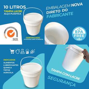 Atenção amantes da culinária e da organização apresentamos o balde de 10 litros para alimento, a solução perfeita para armazenar seus alimentos de forma segura, prática e livre de preocupações. Com tampa lacre e alça plástica atóxica, este balde oferece tudo o que você precisa para manter seus alimentos frescos e saborosos por mais tempo, além de garantir a saúde e bem-estar da sua família.