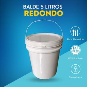 O balde de 5 litros é fabricado em material resistente, durável e de alta qualidade, garantindo uma longa vida útil. Produzido com matéria-prima virgem, é funcional e permite fácil manuseio e transporte graças à alça plástica robusta.