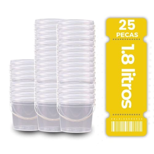 Balde transparente 1.8 litros com tampa lacre de segurança 100% bpa free - kit com 25 peças Importante: Os baldes sao comercializados vazios e sem impressão. O titulo do anuncio e o rotulo na foto são apenas sugestoes de uso Conteúdo do kit: 25 x baldes transparentes com alça plástica de 1.8 litros 25 x tampas plásticas transparentes com lacre de segurança Imagine abrir sua geladeira e encontrar todos os seus alimentos perfeitamente organizados e protegidos. Com nossos baldes transparentes, você visualiza o conteúdo sem precisar abrir as tampas, economizando tempo e evitando bagunça. A tampa com lacre de segurança garante que seus alimentos permaneçam frescos por mais tempo, evitando desperdícios e economizando dinheiro. Os baldes industriais da nastripack são fabricados com matéria-prima 100% virgem e atóxica, em conformidade com os requisitos da anvisa. Produzidos em equipamentos de última geração, esses baldes apresentam alta produtividade e baixo impacto ambiental. Ideal para: Uso comercial: restaurantes, padarias, lanchonetes, food trucks, cozinhas industriais. Uso doméstico: organizar e armazenar alimentos na geladeira, freezer ou despensa. Vantagens: Perfeito para congelamento: congele porções individuais de alimentos ou guarde sobras de forma segura e prática. Resistência térmica: suportam baixas e altas temperaturas, sendo aprovados para contato direto com alimentos. Versatilidade: ideal para armazenamento de tintas, químicos, produtos agrícolas, lubrificantes e alimentos. Tampa lacre: fechamento seguro e fácil de colocar, com design que permite empilhamento seguro. Reutilizáveis e sustentáveis: diminua o uso de embalagens descartáveis e contribua para um planeta mais limpo. Estes baldes são resistentes e podem ser reutilizados diversas vezes Fácil transporte: leves e com alça resistente, são práticos para transportar seus alimentos com segurança. Benefícios: Segurança alimentar: fabricados em polipropileno virgem, 100% livre de bpa e atóxico, garantindo que seus alimentos estejam protegidos e conservados de forma segura. Tampa com lacre de segurança: vedação hermética que impede a entrada de ar, umidade, poeira e insetos, mantendo seus alimentos frescos por mais tempo. Transparência: visualize o conteúdo sem precisar abrir o balde, facilitando a organização e identificação dos alimentos. Empilhável: otimize o espaço de armazenamento, seja na geladeira, freezer, despensa ou prateleiras. Resistente: suporta baixas e altas temperaturas, podendo ser levado ao freezer ou micro-ondas sem a tampa . Satisfação garantida: se por algum motivo você não estiver satisfeito com o produto, oferecemos de devolução do seu dinheiro. Compre agora e experimente a diferença Especificações técnicas: Balde: Diâmetro interno superior: 144,60 mm Diâmetro interno inferior: 125,00 mm Diâmetro externo superior: 152,90 mm Diâmetro externo inferior: 128,60 mm Diâmetro externo máximo: 164,50 mm Altura interna: 126,60 mm Altura externa: 129,50 mm Altura com a tampa: 130,50 mm Espessura média lateral: 0,75 mm Espessura média no fundo: 0,77 mm Peso: 50 gramas Material: polipropileno random Tampa: Diâmetro externo: 191,50 mm Altura: 12,10 mm Espessura média de parede: 0,80 mm Peso: 18 gramas Material: polipropileno random Descrição do produto: O balde transparente de 1.8 litros com tampa lacre é um recipiente versátil, projetado para o armazenamento seguro de alimentos. A transparência do balde facilita a visualização do conteúdo, tornando mais prático o uso no dia a dia. Principais características: Material seguro: fabricado em polipropileno pp de alta densidade, seguro para contato com alimentos. Design prático: a forma redonda permite empilhamento fácil, otimizando o espaço de armazenamento. Capacidade adequada: com 1.8 litros, é ideal para uso comercial em restaurantes, padarias, indústrias alimentícias, entre outros.