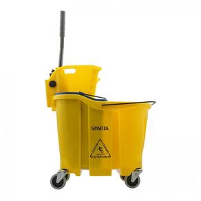 Confira a mais recente tecnologia de limpeza de pisos da Sparta Melhoramos o balde industrial de esfregona adicionando quebra de vigília e abaixando o centro de gravidade para que não tombe e derrame quando estiver cheio. Emparelhado com um balde extra para água suja, que permite manter a água suja separada da água limpa e um espremedor de perfil mais baixo, essa combinação mantém o piso ainda mais limpo, facilitando aos zeladores fazer menos viagens para trocar a água. Esta combinação de balde é perfeita para restaurantes, hotéis, hospitais, serviços de limpeza e muito mais. Melhorias de produtos como essa tornam as decisões de compra ainda mais fáceis ao planejar sua estratégia geral de manutenção.