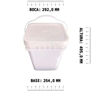 Especificações técnicas: - Material: Plástico resistente de alta qualidade - Capacidade nominal: 20 litros - Capacidade total sem tampa até a borda: 22,85 litros - Capacidade real abaixo da tampa: 20,57 litros - Peso do balde: 606 gramas