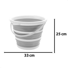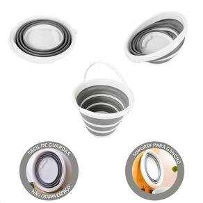 O Balde de Limpeza Dobrável Com Alça Multiuso 10 Litros possui um design moderno nas cores branco e cinza, trazendo um toque de elegância para suas tarefas domésticas. Ele conta com uma alça resistente, facilitando o transporte e manuseio do balde.