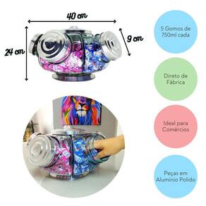 Importante:Por gentileza, analise as medidas do baleiro antes de efetuar a compra, para saber se o produto em questão atende a sua necessidade. Existem baleiros de tamanho pequeno, médio e grande e cada um terá sua aplicação conforme necessidade do cliente. Para grandes comércios que pretendem vender balas, o recomendado é um baleiro de tamanho grande. Para decoração em residências ou escritórios, o pequeno ou o médio atenderão. O anúncio possui toda a descrição de tamanhos e medidas para te auxiliar na compra e evitar qualquer tipo de transtorno. E se ainda assim tiver dúvidas, teremos prazer em te responder no campo de dúvidas.----------------------------------------------------------------------------------------------------------------------------------------------------------------------------------------------------------------------------------------------descrição do produto:- baleiro giratório grande de vidro com 5 gomos de 750ml cadaFabricado artesanalmente e com capricho, para ser resistente, durável e funcional para venda de balas em comércios. Suas tampas são feitas em alumínio polido que dão um brilho único.Seus gomos são capazes de armazenarem até 3kg de balas, no total.Apresenta mecanismo silencioso, que não emite ruídos.Medidas:-comprimento 40cm-altura 24cm-peso 8,8kg-diâmetro do bocal 9cmIdeal para uso comercial.Obs.: as balas da foto são meramente ilustrativas e não acompanham o produto----------------------------------------------------------------------------------------------------------------------------------------------------------------------------------------------------------------------------------------------Procedência:Produto vem direto da fábrica, tradicional na produção de vidro a 90 anos.Fabricação artesanal e manual Por se tratar de um produto artesanal, que não é feito por máquina, o vidro pode conter pequenos detalhes de fabricação minúsculas bolhas de ar ou sinais , que não afetam a estética da garrafa.Tais detalhes não são considerados defeitos de fabricação, pois são normais em processos de fabricação artesanais.