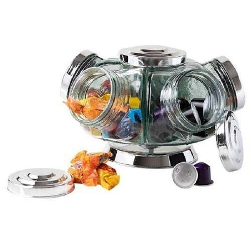 Baleiro giratório retrô médio cor prata, tampas ,base e chapéu plásticas metalizadas na cor prata, capacidade de armazenar 1,5 kg de balas. Para uso pessoal como peça decorativa, devido seu estilo retrô, beleza ao seu alcance, atende a todos os tipos de consumidores por produtos artesanais . Obs: as pequenas imperfeições, tais como irregularidades na espessura, no peso ou no diâmetro e as pequenas bolhas, são a clara garantia de um produto feito artesanalmente. Ficha técnica: Baleiro de vidro giratório médio 05 potes Vidro transparente. Capacidade 300 gramas por gomo. Tampas plásticas na cor prata. Base plástica na cor prata. Obs: a variação da capacidade de armazenar por gomo dependera do produto a ser armazenado. Dimensões do baleiro: Altura 17 cm Diâmetro 30 cm Diâmetro da boca 7,5 cm Peso líquido 4,70 kg Dimensões na caixa: (cxaxp) 34 x 34 x 21cm Peso bruto 7 kg Medidas e peso aproximadas. Obs: caixa de madeira espessura 6mm garantindo a segurança no transporte. Qualidade testada e aprovada pelos nossos clientes em toda linha. Reputação perfeita 5 estrelas. Boas compras Ficha técnica - Fonte do produto: Reidosbaleiros - Capacidade em peso: 1,5 KILOS - Cor: Prata - Largura: 30cm - Unidades por pacote: 1 - Material: Vidro - Comprimento: 30 CM - Com tampa: Sim