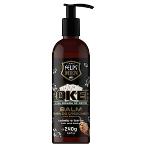 Felps Men Poker Balm hidratante para barba e cabelo, formulado com uma bomba de vitaminas que estimula o crescimento. Fios extremamente fortes, macios e com brilho, da raiz às pontas. Acalma a pele sensível e ajuda a combater a queda.
