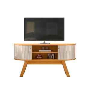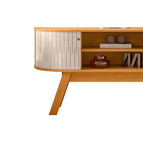 Atlanta é ideal para você que busca um móvel minimalista e inovador. Suporta TVs de até 55 polegadas, com medidas de 1,36m de largura e 0,68m de altura. Possui o tampo e a base em formato curvo, onde as portas flexíveis deslizam acompanhando a curvatura do móvel. Também conta com 2 divisórias para objetos decorativos ou aparelhos eletrônicos. Pés palito e puxadores na cor bronze trazem modernidade e sofisticação ao produto. Confira as cores disponíveis e traga inovação ao seu lar.