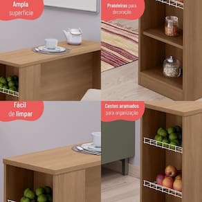 Combinando funcionalidade e beleza, a Bancada Balcão de Cozinha com Fruteiras Laterais 120cm Multimóveis CR20374 é a opção perfeita para a cozinha. Um único produto que possibilita várias opções uso: ótima alternativa para ampliar o espaço de preparação e organização, aliada àquelas refeições mais rápidas do dia, e ainda pode ser utilizada como um belo divisor de ambientes. Desenvolvido com excelente matéria-prima (MDP) que garante a vida útil por mais tempo, esse módulo possui estrutura robusta e detalhes que encantam, como a prateleira lateral para organizar utensílios e o cesto aramado metálico para que frutas e legumes fiquem sempre acessíveis. Seja para cozinhar, compartilhar histórias ou desfrutar de deliciosas refeições em família e amigos: a sua cozinha irá se transformar com essa bancada.