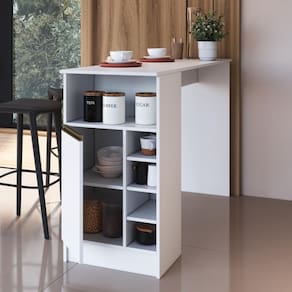 Seu design moderno conta com nichos abertos, ideais para deixar à mão objetos de uso frequente, e uma porta com espaço interno fechado, proporcionando organização discreta para mantimentos ou outros itens essenciais. Uma solução inteligente para cozinhas compactas ou planejadas.