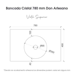 Dê um toque de luxo ao seu banheiro com a bancada de banheiro com cuba esculpida redonda cristal da don artesano. Fabricada em superfície sólida mineral, é durável, resiste a manchas e é fácil de limpar. Suave ao toque e com acabamento impecável, ela transforma qualquer ambiente em um espaço exclusivo e refinado A bancada risca O material é resistente a abrasão, mas caso ocorra algum risco, é possível remover facilmente utilizando o lado áspero da esponja. A bancada mancha Por ser um material não poroso, a ssm não vai absorver manchas. Se algum líquido secar sobre a superfície, é possível remover a sujeira com uma limpeza diária. No entanto, recomendamos que evite deixar líquidos secarem na bancada. Como limpar a bancada A limpeza diária pode ser feita usando detergente, uma esponja multiuso e um saponáceo cif , esfregando o lado áspero da esponja em movimentos circulares. Com isso é possível remover a maioria das sujeiras. Se precisar fazer uma limpeza mais pesada, pode ser Utilizado água sanitária ou cloro. Lembre-se de enxaguar bem para remover os produtos químicos após a limpeza. Pode usar água quente Para garantir a durabilidade, é importante evitar o apoio de objetos muito quentes na superfície da bancada, e ao despejar líquidos quentes, abrir a água em temperatura ambiente para evitar o choque térmico. Especificações Marca: don artesano Código sku: cristal80 Material: superfície sólida mineral Dimensões da bancada: 80 x 49 x 12 cm Acabamento: acetinado Furação da válvula: padrão Peso da bancada: 13,8 kg As dimensões podem variar em alguns milímetros devido ao acabamento artesanal. Marca: Não Informado