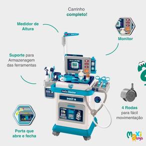 Carrinho de Médico Brinquedo Infantil Doctor Center com 37 Peças - Maxi Toys Transforme a brincadeira em aprendizado com o Carrinho de Médico Infantil Doctor Center da Maxi Toys Ideal para crianças a partir de 3 anos, este brinquedo educativo estimula a imaginação, desenvolve empatia e ensina noções básicas sobre cuidados com a saúde. Equipado com 37 acessórios de médico realistas, este brinquedo é um verdadeiro centro de atividades que convida os pequenos a mergulhar em um mundo de descobertas. Entre os destaques, está o termômetro, que emite som dando um toque ainda mais real à brincadeira. Estetoscópio, tesouras, pinças, seringas, monitor, medidor de altura, película plástica de Raio-X, entre outros, não poderiam faltar nesta brincadeira. Tudo isso em um design funcional e fácil de montar, com abertura frontal e compartimentos organizadores para guardar todos os instrumentos com praticidade e 4 rodinhas para fácil movimentação. Indicado para crianças a partir de 3 anos. Certificado pelo INMETRO, o produto garante toda a segurança necessária para o uso infantil, permitindo que pais e responsáveis fiquem tranquilos enquanto os pequenos se divertem. Perfeito para presentear em qualquer ocasião especial. O Carrinho de Médico Doctor Center da Maxi Toys é de sorrisos e muitas horas de diversão educativa. Principais Características: - Idade Recomendada: A partir dos 3 anos - 37 Acessórios de médico realistas - 4 Rodas para movimentação - Termômetro que emite som - Porta frontal - Design funcional - Combina diversão e aprendizado em uma única caixa - Ajuda a exercitar o cérebro das crianças - Cores vibrantes e atrativas - Estimula a habilidade prática das crianças - Pequenos suportes laterais para organização - Promove um brincar educativo. - Fácil de montar - Requer 2 pilhas AA Não Inclusas - Produto certificado pelo INMETRO Especificações Técnicas: - Conteúdo da Embalagem: 1 Carrinho de Médico + Acessórios + Manual de Instrução - Composição/Material: ABS e PP - Dimensões do produto aberto: A: 53 cm x L: 43 cm x P: 25 cm aprox. - Peso: 2,5 kg bruto - : 90 Dias Contra Defeito de Fabricação Pelo Fabricante - Certificação: 004346/2023 - Código do Fabricante: 21857 - EAN: 7899403218579 - Marca: Maxi Toys Imagens meramente ilustrativas. As cores e estampas podem variar de acordo com o lote do fabricante. Homologação Inmetro: 00763/2021-BRINQ-1 Marca: Não Informado