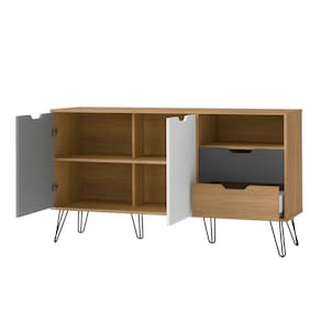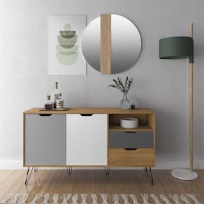Bancada Buffet Estocolmo Carvalho/Grafite/Branco/Prata 2 Portas 2 Gavetas Usinadas 6 Pés em Metal - Artely