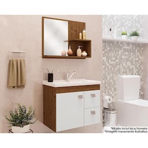 Conjunto de Banheiro Balcão Suspenso Isa c/ Cuba 55cm e Armário c/ Espelho Amendoa/Branco - MGM Marca: MGM