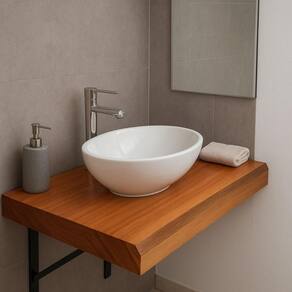 Bancada de Banheiro Rústica 60x43x6cm Madeira Eucalipto Aparador Cuba Lavabo.