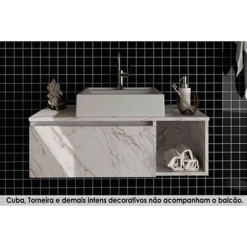 Bancada De Banheiro Suspenso Bn3601 1 Porta Cor Mármore Branco - Tecno Mobili