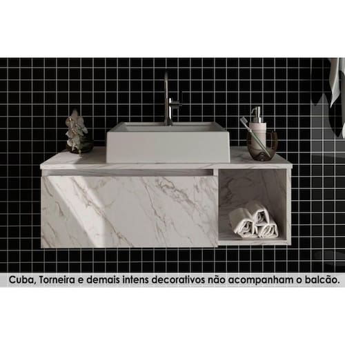 Gabinete de Banheiro Suspenso BN3601 s/ Cuba c/ 1 Porta 80cm Mármore Branco - Tecno Mobili