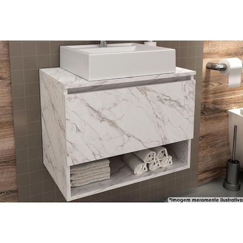 Bancada De Banheiro Suspenso Bn3606 1 Porta Cor Mármore Branco - Tecno Mobili