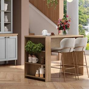 Características: Estrutura em MDP 15mm, Tampo de 30mm, 3 Prateleiras/nicho lateral, 4 Sapatas, sistema de montagem com parafusos e cavilhas. Obs.: Não acompanha banqueta