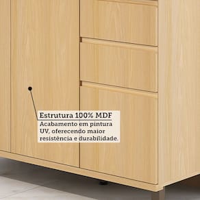 Material Balcão com Tampo: Corpo em MDF 15mm, frontal em MDF 18mm, tampo em MDF 25mm, com acabamento em Pintura UV.