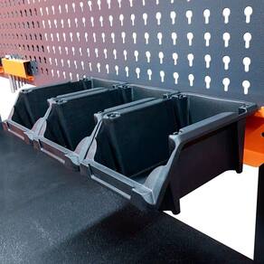 A bancada vem equipada com um painel integrado que inclui um misto de 24 ganchos plásticos, gavetas plásticas e uma gaveta com corrediça telescópica. Além disso, conta com uma manta de borracha que protege a superfície e oferece maior aderência para suas ferramentas. A pintura eletrostática a pó e o tratamento químico antiferruginoso garantem uma longa vida útil, protegendo contra corrosão e desgaste.