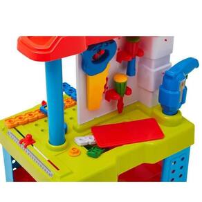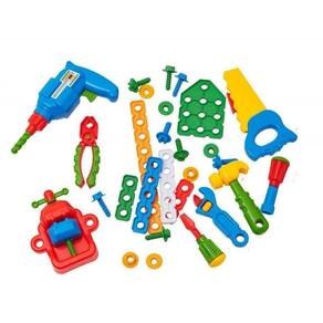Brinquedo Infantil Bancada De Trabalho Ta Te Ti Calesita Bancada de trabalho com ferramentas para criar, montar e desmontar Uma bancada com duas frentes de trabalho colorida e equipada com muitas ferramentas e acessórios A brincadeira será montar e desmontar, parafusar e soltar parafusos e o que mais a imaginação quiser O kit vem com alicate, chave de fenda, chave de boca, chave inglesa, morsa, serrote e furadeira que fazem barulho igual aos de verdade, martelo, parafusos e porcas. Características: Material: Plástico. Referência: 0450 Idade recomendada: A partir de 3 anos. Conteúdo e Dimensões: 1 Bancada de trabalho 1 Manual de Instruções 2 Gavetas 1 Furadeira 1 Morsa 1 Alicate 1 Chave de fenda 1 Chave de boca 1 Chave inglesa 1 Serrote 1 Martelo 6 Formas planas 8 Parafusos 8 Porcas Dimensões do Brinquedo aprox.(axlxp): 85 x 49 x 38,5cm. Peso 2,6 Kg Informações Adicionais: Adaptação social e interação Conhecimento Geral Expressão e comunicação Imaginação e criatividade Resolução de problemas Observação: Foto: Imagem Meramente Ilustrativa. Garantia (Fabricante): Contra defeitos de fabricação. INMETRO CE-BRI/INNAC-02008-03ª NM300/2002