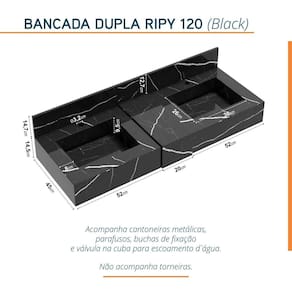 Bancada em Porcelanato 120cm com Cuba Esculpida Ripy Black