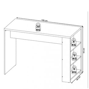 Caracteristicas: Estrutura em MDP Tampo em MDP BP de 30mm 3 Prateleiras laterais Tampo suporta ate 20 kg distribuidos Cada prateleira suporta ate 5 kg distribuidos