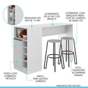 Caracteristicas: Marca: Menu Moveis Modelo: 0535BR Produzido em MDP de 15 mm Acabamento UV Portas com Dobradicas Metalicas Puxadores Perfil em ABS na cor Prata Compativel com Banqueta Media com Alt. Assento de 60/65 Cm Banqueta NAO Inclusa