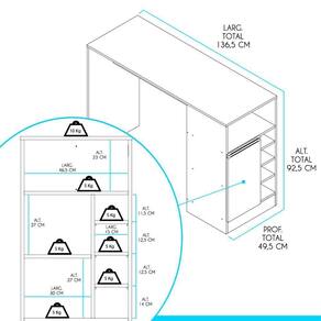 Dimensoes: Altura: 92,5 cm Largura: 136,5 cm Profundidade: 49,5 cm Peso: 35 Kg