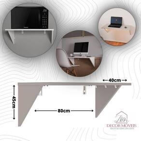 Bancada Mesa de Escritório Status Suspensa Cozinha Home Office Nosso produto foi desenvolvido especialmente para seu home office, mesa de estudos ou como preferir nomear, o produto conta com 1 mesa suspensa, produto é compatível com qualquer compartimento e lugar, sendo possível você usar sua criatividade e montar o seu cantinho da sua preferência, tendo uma melhor facilidade para limpeza, regulação de altura e espaços.Produzida com material de alto padrão de qualidade que proporciona durabilidade e resistência à mesa.1 Kit de montagem com: Parafusos e suportes para fixação das peças. Especificações: Cor: Branco Material: 100% MDF pintura TX Qualidade de móveis planejado Dimensões da mesa: Largura: 80 cm Altura: 45 cm Profundidade: 40 cmComo fixar na parede: Suporte são enviados junto, o suporte da mesa acompanha uma capa da cor do móvel para um resultado final melhor do móvel. Grau de dificuldade de montagem: Fácil Como montar: Pensando no consumidor que não tem a disponibilidade de espera para um montador ir até sua residência, enviamos marcações kit instalação com todos os parafusos e nosso suporte, com essas informações facilita o processo de montagem e em menos de 30 minutos tem a sua mesa montada. Observações Importantes: - Produto não deve ficar exposto diretamente ao sol, calor e umidades excessivas. - Recomendações de Limpeza: Utilize somente pano seco ou levemente umedecido. - O produto pode sofrer alterações de tonalidade conforme o seu monitor. - Imagens meramente ilustrativas, produto não acompanha objetos de decoração e eletrônicos. - Ao receber, verifique a embalagem. Se detectar irregularidades, recuse o recebimento e nos contate. - Nós não nos responsabilizamos pela montagem e por problemas causados pela montagem realizada por você ou montador contratado. Enfatizamos a recomendação aos nossos clientes de contratar um montador profissional. - Eventualmente, se faltar qualquer peça ou acessório no produto, nos contate e enviaremos a peça/acessório sem custo adicional. Marca: Decor Moveis