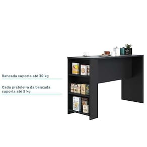Bancada Mesa Gourmet Para Cozinha 150cm X 97cm Com 3 Prateleiras Suprema Luciane Móveis Preto