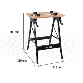 Conteúdo da Embalagem: 1 Bancada multiuso. Possui sistema dobrável e manopla para ajuste das bases (abre e fecha), conferindo maior praticidade no uso e maior facilidade para armazenamento. Indicada para trabalhos de reparos ou manutenções, auxiliando na fixação ou apoio de peças e objetos com maior praticidade e segurança. Proibido o uso para sustentação de pessoas e/ou animais. Modelo:BM 600 Comprimento da bancada aberta:610 mm Largura da bancada aberta:360 mm Altura da bancada aberta:800 mm Capacidade de carga:100 kgf Material da base:MDF Material da estrutura:Chapa metálica Acabamento:Pintado Cor:Preta e amarela Massa aproximada (peso):7,4 kg