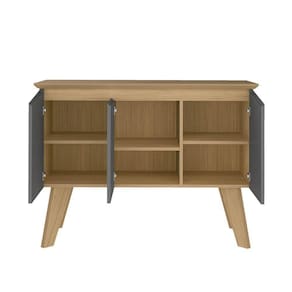 Bancada Buffet Oásis Carvalho com Grafite 3 Portas Tampo com Borda Invertida e 4 Pés - Artely