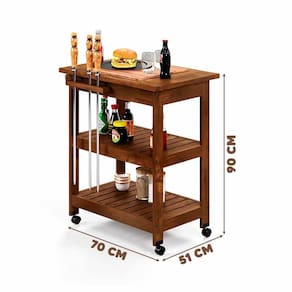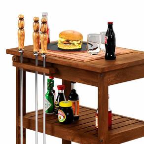 Suporte para Espetos:Inclui um prático suporte para espetos, permitindo organizar e manter os utensílios de churrasco sempre à mão.