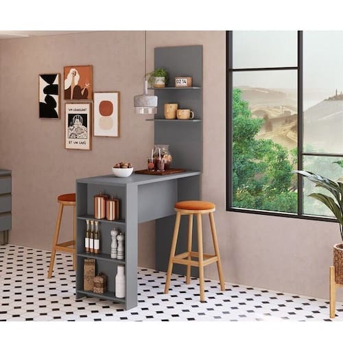 A bancada com Painel para cozinha é um produto com excelente qualidade, produzido em MDP de fácil montagem. Possui 5 prateleiras e espaço para fazer suas refeições, deixando assim sua casa com um ambiente mais moderno e aconchegante. Altura do Conjunto: 120 cm Ambiente: null Ambiente Principal: Cozinha Cor: Cinza Informação Complementar: 1x Bancada para Cozinha com 3 Prateleiras Luna Cinza Largura: 102,5 cm Altura: 120 cm Peso: 29 kg Profundidade: 54 cm Necessita Montagem: Sim
