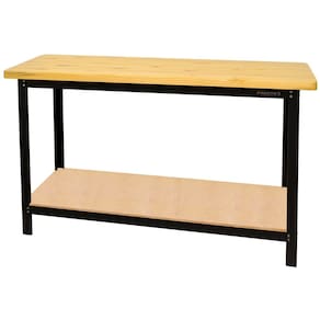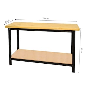 Tampo superior em pinus maciço 40 mm e inferior em MDP 15 mm de espessura. É possível personalizar a bancada, adquirindo o Tampo em aço galvanizado 1,50 m (código 91515) e/ ou 2 gavetas (código 91520), todos são acessórios e não acompanham este produto.