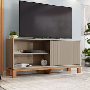 A Bancada Jace da Caemmun é a escolha perfeita para completar a sala de estar com um móvel moderno e funcional. Detalhe para a porta de correr com textura microrripada que se adapta a diversos estilos de decoração, enquanto os pés em cavalete com base elevada conferem um ar leve e contemporâneo. Ideal para televisores de até 45 polegadas se tornando a escolha perfeita para quem busca um móvel que segue as últimas tendências do mercado.