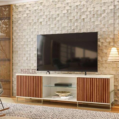 Bancada Palestra - Gran Belo a escolha perfeita para quem busca uma solução moderna e funcional para o seu espaço de entretenimento em casa. Projetado para acomodar televisores de até 75 polegadas, este rack possui uma estrutura robusta e resistente, que garante a segurança e estabilidade do seu aparelho. ?Além disso, possui prateleiras e nichos espaçosas, que permitem que você organize seus equipamentos de áudio e vídeo com facilidade. Com amplo espaço de armazenamento, você pode armazenar seus consoles de jogos, players de DVD, caixas de som e muito mais.
