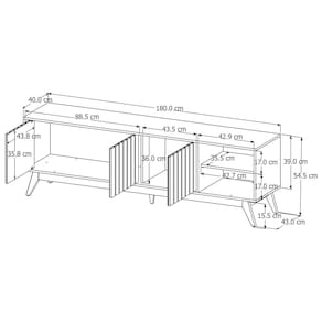 A bancada ripada exclusiva da linha açaí tem a estrutura (tampo, base, portas, laterais e prateleiras) em MDF 15cm, portas ripadas em MDF de 18cm com dobradiças, além de pés e travessas em madeira maciça.