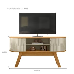 Esse Rack é perfeito para o seu ambiente, contém deltahes curvos no tampo e na base garantindo a elegância para a sua sala. Testado para TVs de 55 polegadas.