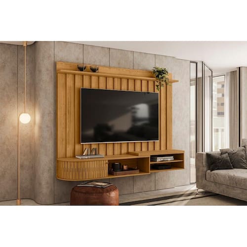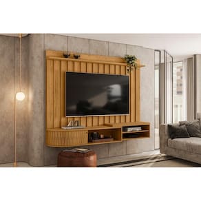 A Ímola veio para roubar a atenção na sua sala de estar! Tem a largura de 2,06m e suporta TVs de até 75 polegadas. O destaque nesse produto é seu painel que traz o conceito do ripado com chapas em diagonal, que proporciona volumetria e a ideia de movimento. Conta com uma prateleira na parte superior e com nichos para decorar como quiser. Possui 2 divisórias para aparelhos eletrônicos. O charme é proposto pela porta flexível em MDF que corre acompanhando a curvatura do móvel, já que o mesmo tem em seu tampo e base detalhes em formato curvo. Confira as cores disponíveis e traga inovação e sofisticação ao seu lar.
