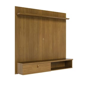 Desenvolvida para ser fixada diretamente na parede, a bancada Íris oferece uma solução funcional e estilosa para organização do ambiente. O televisor deve ser instalado no painel integrado, e o móvel suporta TVs de até 55", sendo ideal para espaços compactos e modernos.