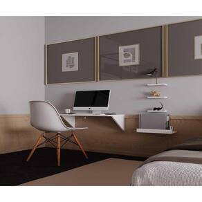 Nosso produto foi desenvolvido especialmente para seu home office, mesa de estudos ou comoPreferir nomear, o produto conta com 1 mesa suspensa, 3 prateleiras e 1 suporte para CPu/livreiro.O produto é compatível com qualquer compartimento e lugar, sendo possível você usar suaCriatividade e montar o seu cantinho da sua preferência, tendo uma melhor facilidade para limpeza,Regulação de altura e espaços.As prateleiras foram criadas especialmente para uma organização melhor, acomodando equipamentos e acessórios, assim aumentando a eficiência durante o uso.Produzida com material de alto padrão de qualidade que proporciona durabilidade e resistência à mesa.Informações do produto:Contém:1 Mesa3 Prateleiras1 Suporte para CPU/livreiro1 Kit de montagem com: Parafusos e suportes para fixação das peças.Especificações:Cor: BrancoMaterial: 100% MDF pintura TX Qualidade de móveis planejado Dimensões da mesa:Largura: 80 cmAltura: 45 cmProfundidade: 40 cmDimensões prateleiras: cada Largura: 20cmProfundidade: 10 cmDimensões suporte CPU/livreiro:Largura: 40 cmAltura: 5 cmProfundidade: 18,5 cmComo fixar na parede:Suporte são enviados junto, o suporte da mesa acompanha uma capa da cor doMóvel para um resultado final.Como montar:Pensando no consumidor que não tem a disponibilidade de espera para um montador ir até suaResidência, enviamos marcações kit instalação com todos os parafusos e nosso suporte.