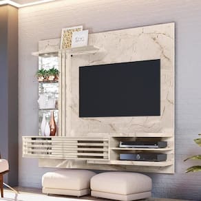 Feito para TVs até 55 polegadas, ele conta com 2 portas deslizantes e suas prateleiras de vidro trazem destaque aos seus objetos decorativos!