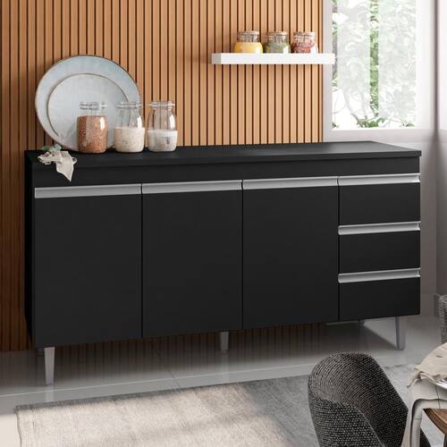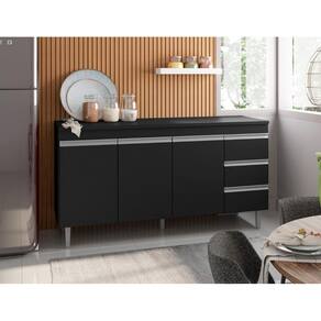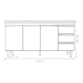 Possui 3 portas e 1 prateleira interna, 3 gavetas