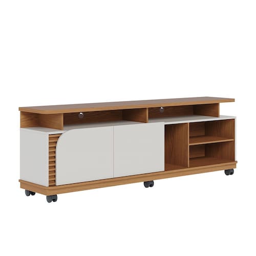 O Rack Bancada Ewa 1.8 é a combinação perfeita de elegância e funcionalidade, ideal para transformar sua sala de estar em um ambiente moderno e aconchegante. Seu design refinado se destaca pelos apliques ripados decorativos, que adicionam um toque de sofisticação, e pela porta de quina assimétrica usinada, que confere um visual exclusivo e contemporâneo. Com um tampo robusto de 25mm e detalhes suspensos, essa bancada oferece não apenas resistência, mas também um acabamento sofisticado. O nicho amplo permite organizar eletrônicos e itens decorativos com praticidade, enquanto as duas portas de giro proporcionam espaço extra para armazenar objetos de forma discreta. Projetado para suportar TVs de até 75 polegadas, o Rack Ewa também conta com 6 rodízios embutidos, facilitando a movimentação do móvel conforme a necessidade do ambiente. Se você busca um móvel funcional, sofisticado e versátil, o Rack Bancada Ewa é a escolha ideal para elevar o estilo da sua sala de estar!
