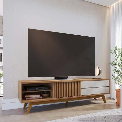 A mesma é projetada com eficiência em mente, oferecendo amplo espaço para acomodar equipamentos eletrônicos, como decodificadores, sistemas de áudio e consoles de videogame. Ela conta com compartimentos bem planejados, incluindo prateleiras abertas e fechadas, gavetas e portas de correr, para organizar seus acessórios de maneira discreta e prática. Além disso, algumas versões possuem soluções para gerenciamento de cabos, mantendo o ambiente livre de fios visíveis.
