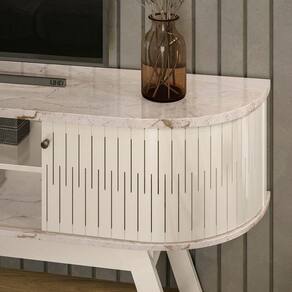 A Valência é ideal para você que busca um móvel minimalista e inovador. Suporta TVs de até 75 polegadas, com medidas de 1,83m de largura e 0,69m de altura. Possui o tampo e a base em formato curvo, onde as portas flexíveis deslizam acompanhando a curvatura do móvel. Também conta com 2 divisórias para objetos decorativos ou aparelhos eletrônicos. Pés palito e puxadores na cor bronze trazem modernidade e sofisticação ao produto. Confira as cores disponíveis e traga inovação ao seu lar.