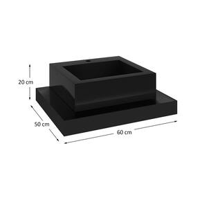 Produto fabricado em MDF e MDP BP (15mm). Possui tampo de vidro temperado com furo para torneira fixada na bancada e suporte e cantoneiras de ferro para sustentação da bancada. Acompanha buchas de nylon e parafusos para fixação na parede, e cuba de apoio. Possui manual de instalação. Acompanha Manual de Instalação: Sim Altura: 20 cm Ambiente Principal: Banheiro Comprimento: 60 cm Cor: Preto Cor do Produto: Preto Economizador: Não Formato do lavatório: Retangular Furos para aplicação de metais: 2 Itens Inclusos: 1 Bancada e 1 Cuba de Apoio Largura: 50 cm Lavatório para canto: Não Linha: Yes Linha ou Coleção: Yes Manual de Montagem e Instalação: https://product-hub-prd.madeiramadeira.com.br/956564/documents/eef714e9-af88-47ce-9b72-a7fb8b34c78e2428301348617281381820257.pdf Marca: Bumi Origem do Produto: Nacional Peso: 13,6 kg Possui coluna: Não Recomendações de Uso, Manutenção e Limpeza: Nunca utilizar produtos químicos / Use somente flanela levemente umedecida em água e em seguida uma outra seca e macia / Caso ocorra vazamento ou acúmulo de água no produto, enxugar imediatamente.